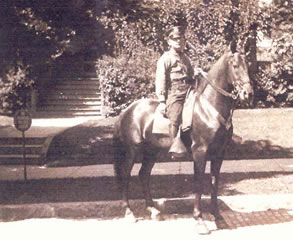 This photo is believed to be Chief Webster W. Cupp on horseback, posed across the street from the old borough building. Photo was taken between 1923 and 1927.
