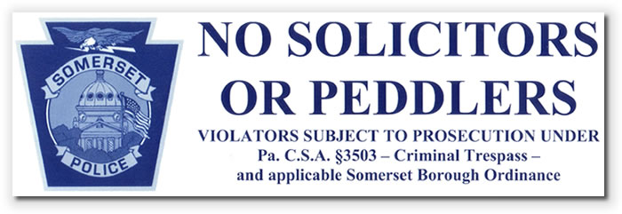 Somerset Borough Mayor William Meyer and Manager Benedict G. Vinzani Jr. announced during a press conference Monday that the borough is providing “No Solicitors or Peddlers” stickers for use on borough residents’ doors.